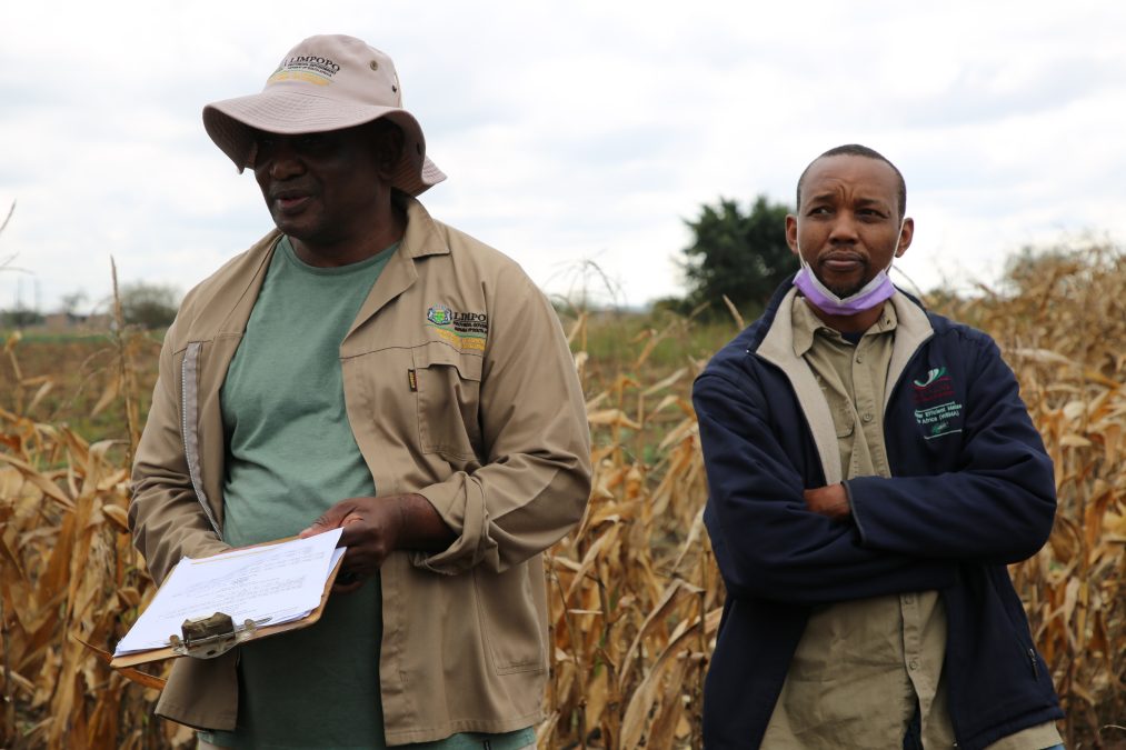 Lebogang Madubanya with a smallholder maize farmer. Photo credit: ARC
